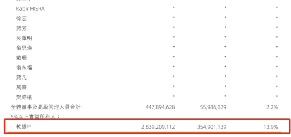 但一方面,阿里年报中标注了马云、蔡崇信拥有的股份是各自直接持有,可以用于单独计算;另一方面,如果软银集团的持股比例真的降至 0.5% 以下,那显然无论是单算还是合算,都要少于马云、蔡崇信任意一人。
