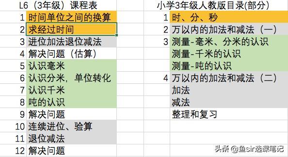 通过上图的一年级、二年级、三年级的火花校内同步课大纲和人教版小学数学教材的对比,我们可以看出: