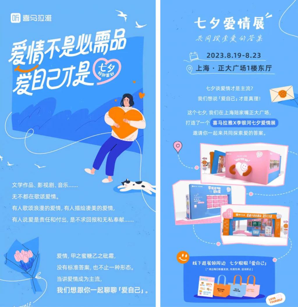 将消费体验与恋人解绑,把节日的仪式感引导向 " 悦己 ":喜马拉雅在今年七夕当天邀请李银河开启七夕专场直播,并携手 12 档播客,一起聊聊「自我」与「他人」的平衡,探讨「爱人」与「悦己」的关系,获得更多的关注和品牌好感。