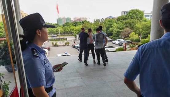 庭审中,民警与法警时不时回头张望,监控其一举一动,静待抓捕时机。