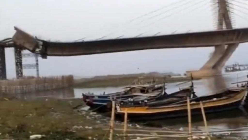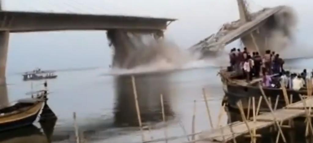 民众亲眼目睹,大桥坍塌砸向恒河!耗资 171 亿卢比,长 3.1 公里,去年已塌过