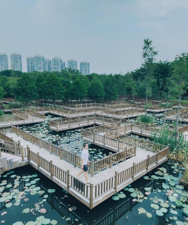 必逛景点:木栈道迷宫。距南门主入口不远,整个迷宫架设在一大片湿地水域之上,既保护了原有湿地环境,又平添了人文的美感和趣味。迷宫面积很大,穿梭其中,想找到一条通往出口的路并不是很容易,别问我怎么知道的~不同种类的睡莲盛开在迷宫各个角落,边走边看,非常惬意