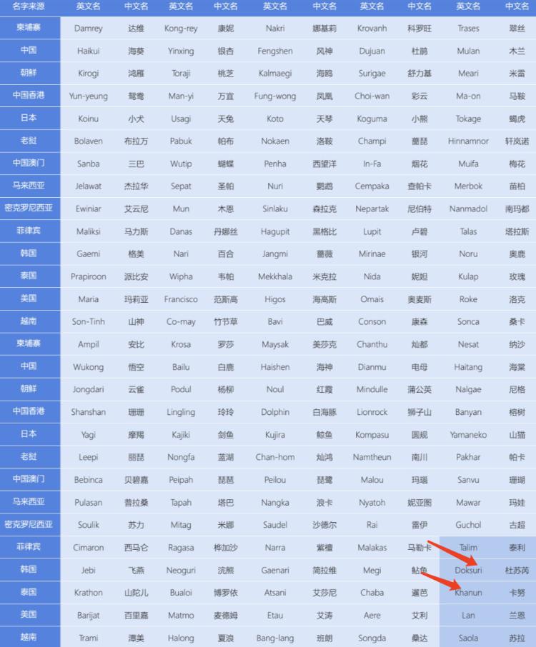 在图中的右下角,我标注出了杜苏芮和卡努的位置。没错!台风是有产地的,且名字跟产地相关。