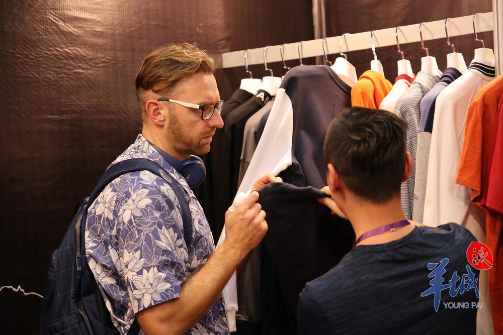 记者在广州纺织品进出口集团有限公司(以下简称 " 纺出公司 ")的展位上看到,该公司的展品以休闲的牛仔系列服装为主,现场不时引来采购商驻足咨询。该公司牛仔事业部业务员徐子云向记者透露,虽然展览才开始两天,但他们的新产品受到了多位外籍采购商的青睐。