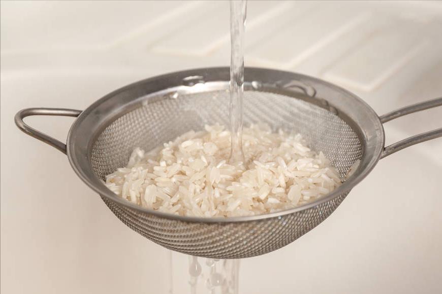1、我们要把大米放在水里,简单地清洗一下,把上面的脏污洗下来。清洗的时候,不要太过用力哈,也不要大力搓洗好久,简单淘洗一下即可。