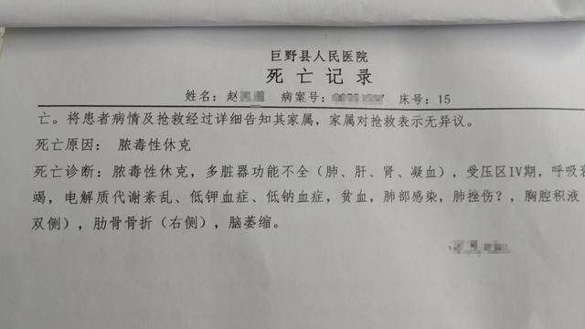 刘先生的实名举报内容显示,2025 年 5 月底,他外出打工时,母亲身体健康。直到 2025 年 10 月 1 日,妻子王某某拨打了巨野县人民医院的抢救电话,经医院检查和医生推断,母亲肋骨断裂错位有 5 根,肋骨断裂应在 7 月左右。