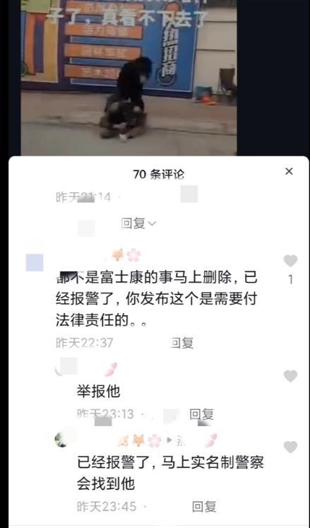网传富士康一员工路边被殴打系虚假配文,事发在外地