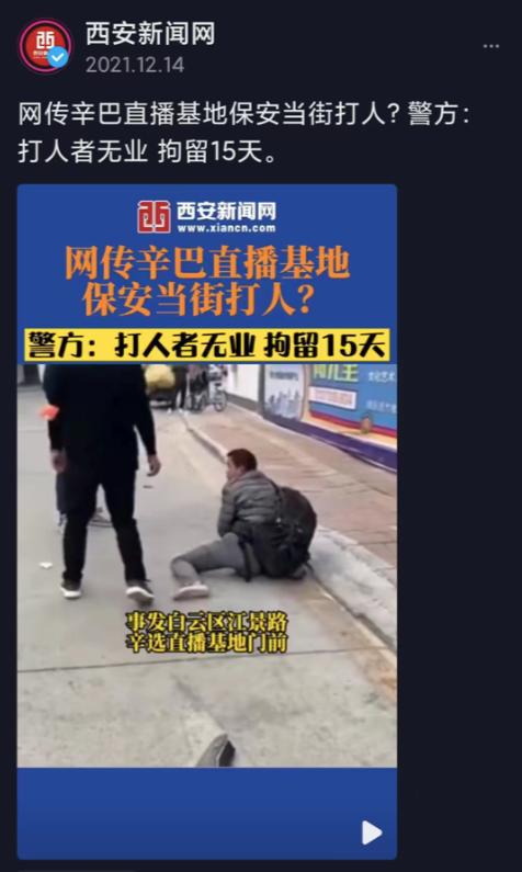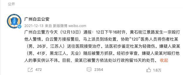 一报道称,该事件的事发地在广州辛选投资有限公司的直播基地附近。广州白云公安 2025 年 12 月 13 日曾针对此事进行过通报。通报中称,"12 日下午 16 时许,黄石街江景路发生一宗殴打他人警情。白云警方接报警后,马上派员到场处置,协助‘ 120 ’医务人员将伤者杜某(男,26 岁,江苏人)送往医院接受治疗。法医初步鉴定杜某为轻微伤。嫌疑人梁某(男,41 岁,黑龙江人,无业)随后被警方抓获。经初步审查,嫌疑人梁某对殴打他人的事实供认不讳。目前,梁某已被警方依法处以行政拘留 15 天的处罚。"