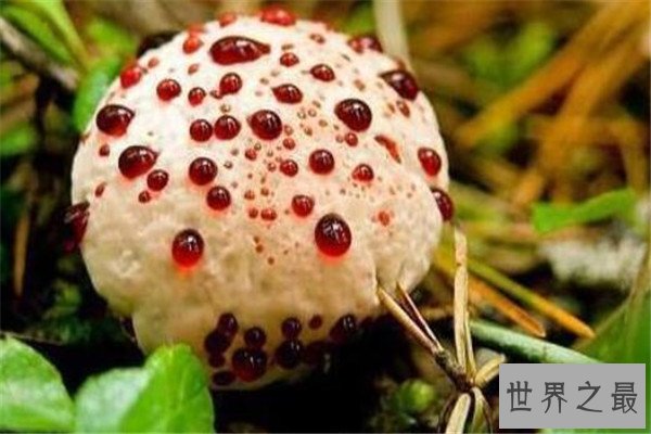 在世界最奇特且最毒的十大蘑菇中血齿菌从外观上看就像草莓奶油冰激凌,主要分布于美国西北部的太平洋沿岸,毒性很强,蘑菇上的白色奶油状是从气孔中冒出来的,遇见了千万别采摘。