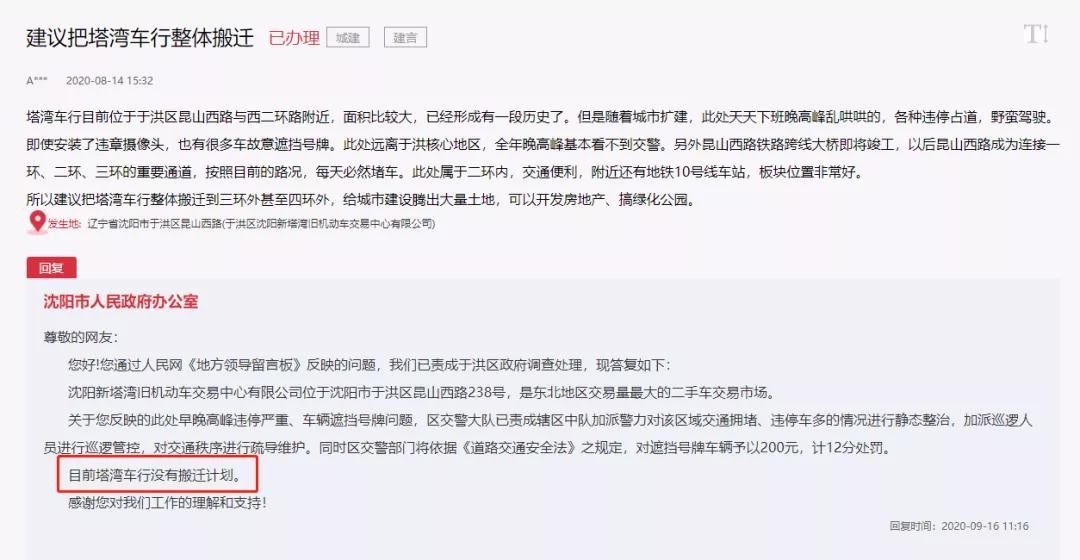 塔湾车行搬迁的消息被传得有鼻子有眼,甚至有人讲6个月后将搬走,可能搬到红旗台或马三家……总之说法众多!