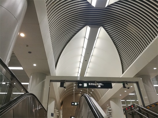 下面是九龙山地铁站的站厅,看起来形状也比较有特点。