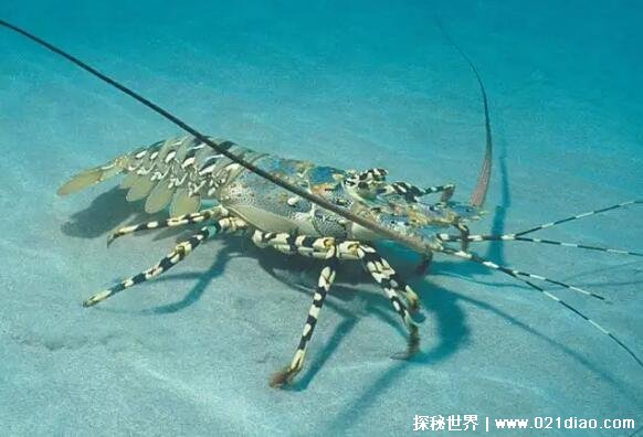 3、不过它们也非常聪明,白天的时候就会隐藏在礁石中,背部的花斑也可以很好的帮它们隐身,直到夜晚才出来觅食。这类龙虾善于爬行,一般我们知道龙虾都是生活在水中的,但是锦绣龙虾不喜浮游,所以专门打渔的人在河口就能轻松捉到它们。