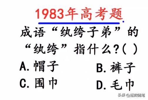 纨绔子弟中的“纨绔”,到底指的是什么?据说这是1983年的一道高考题。中国传统文化博大精深,一些常用的成语,会说的人比比皆是,但理解其中意思的就不一定有多少人了,能够知道其中典故的就更少了。