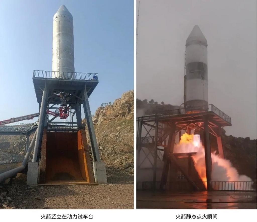 ▲ " 元行者一号 " 全尺寸验证型火箭的静态点火试验