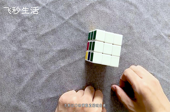 第一层的颜色玩一致,让第一层的边上的颜色和魔方4侧边的颜色一致,每一个变化都超不过3步,不用记口诀便能直接玩出来。