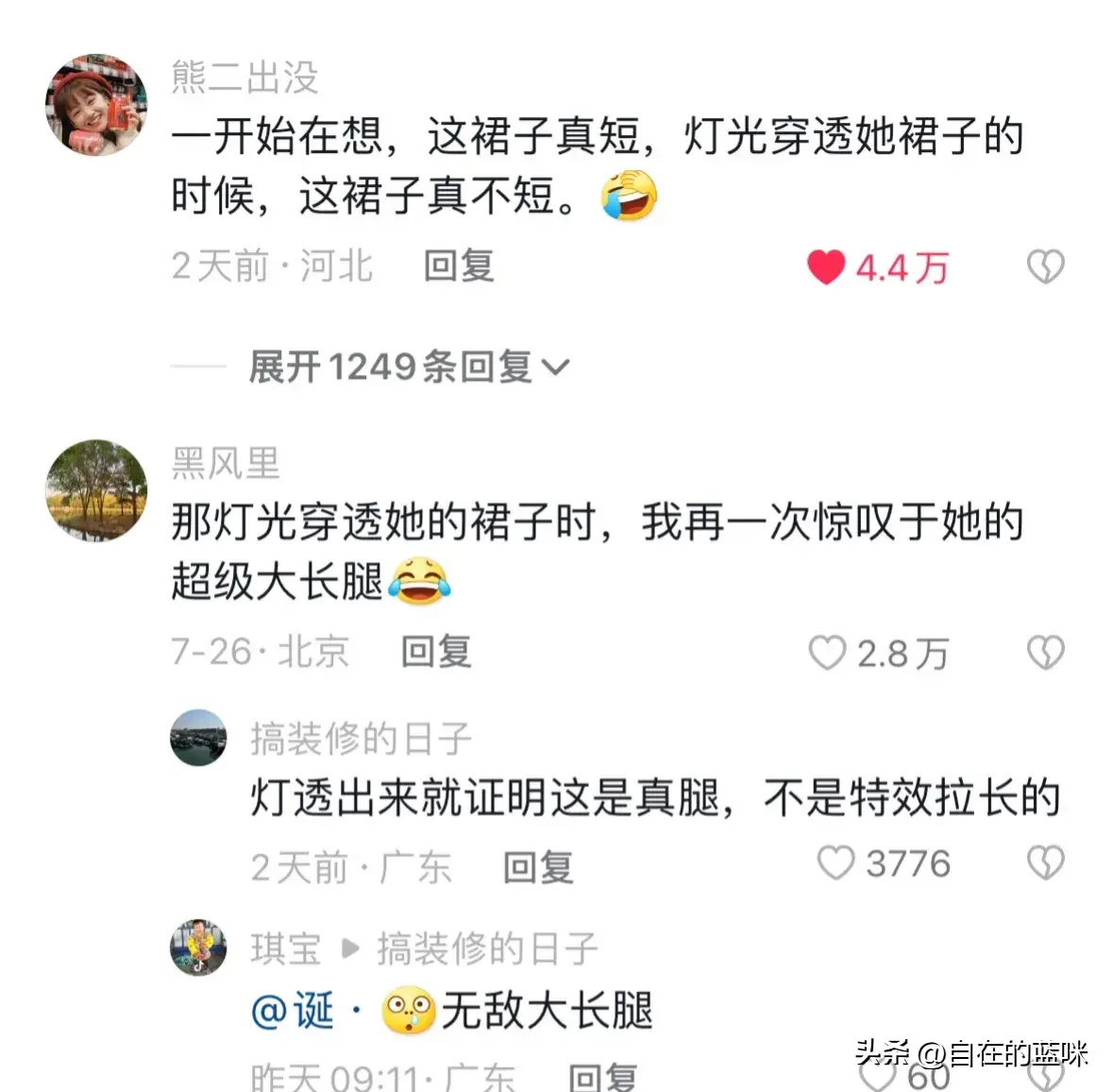 当然,也有一些网友认为,关晓彤的腿长可能只是相机角度和灯光的影响,实际上并没有想象中那么夸张。无论是不是真的腿长,关晓彤都是一名非常出色的演员,她的努力和才华才是最重要的。