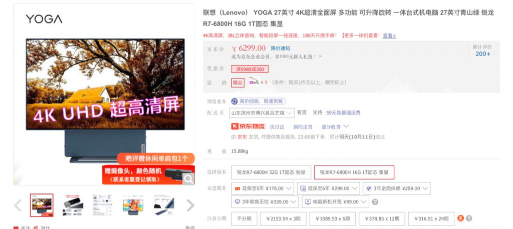 联想 YOGA 27 2025 一体机降至 5999 元:R7 6800H + 4K 屏