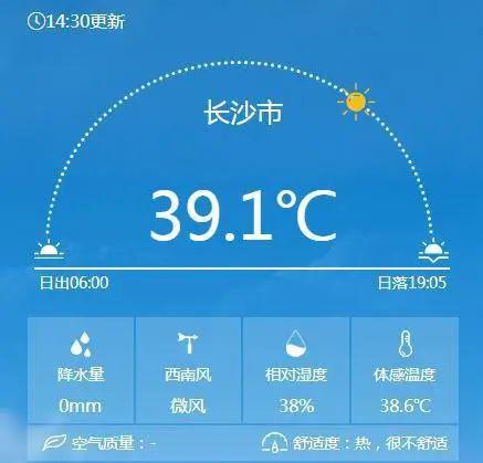 此外,今天 14 时 30 分,湖南长沙的实时气温已经达到39.1 ℃。