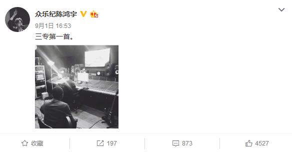 就在昨日,陈鸿宇发布微博写到“三专第一首”,并配上了在录音室的照片,这简直让歌迷又激动又期待啊。