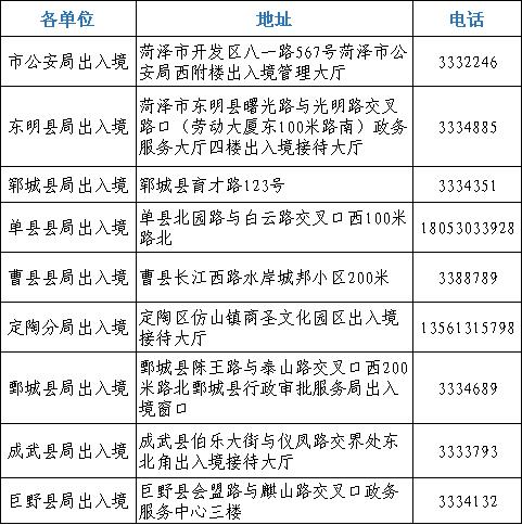 菏泽公安户籍、车管、出入境窗口服务电话大全
