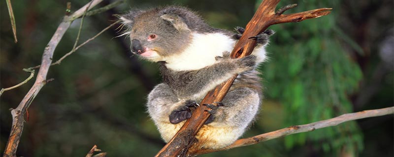 考拉大部分时间都会待在树上,它们几乎不会下地去喝水,它们主要以桉树叶作为自己的食物,而且考拉每天能吃掉许多的桉树叶,消化能力也比较好。考拉在澳大利亚的分布范围广,其主要分布在新南威尔士州、昆士兰州、南澳大利亚州以及维多利亚州等地区。