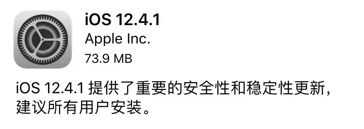 所以这次更新除了修复漏洞就没有其他改变了,如果你想给手机越狱装插件的话就留在iOS12.4,否则可以升级到iOS12.4.1。毕竟这是iOS12的最终版本,理论上是iOS12中稳定性最好的(除非后续又发现了大漏洞导致继续推出修复版本)。