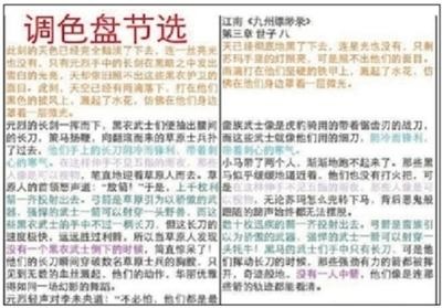 网友制作的《锦绣未央》小说(图左)和其他小说(图右)相同之处的对比表(节选)