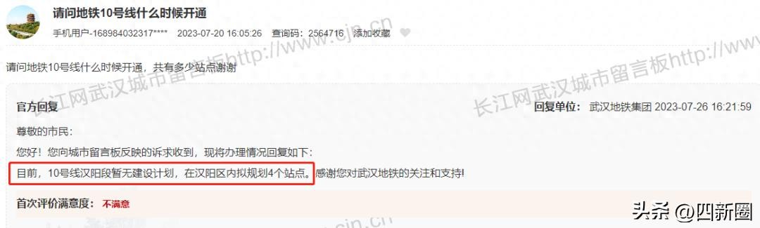 由城市留言板获悉,武汉地铁集团近期回应地铁10号线汉阳段暂无建设计划,在汉阳区内拟规划4个站点。