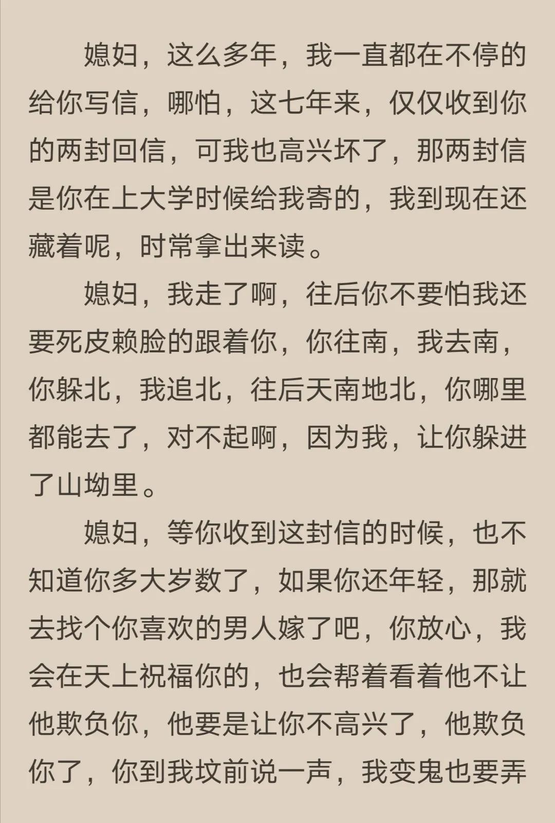 连续大雨导致村里塌方,陆行止在塌方来临之际。将江瑶一把推了出去,他却牺牲了。看到那封陆行止留给她的那封遗书(男主是军人,经常出任务所以每次任务时都会留下遗书) 时泪湿眼眶。终于明白了陆行止对她的感情止于唇齿,掩于岁月!