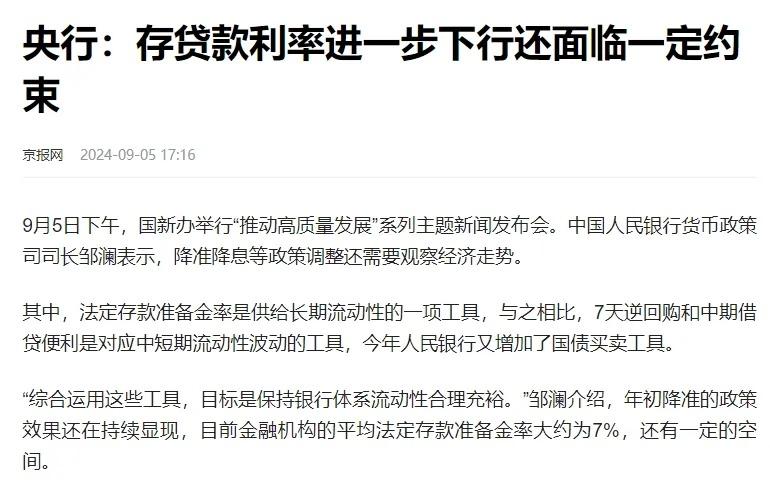 9 月 19 日,美联储宣布降息 50 个基点,国内的媒体和网民都沸腾了,认为我们也会跟着降,而且力度很大。有人猜最少 20 个基点,也有人猜 10 个基点。