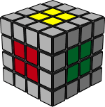 例子主题:在让其他面不受破坏的前提下,把两对拼在一起(关键技巧之二)。 如左图,