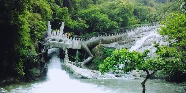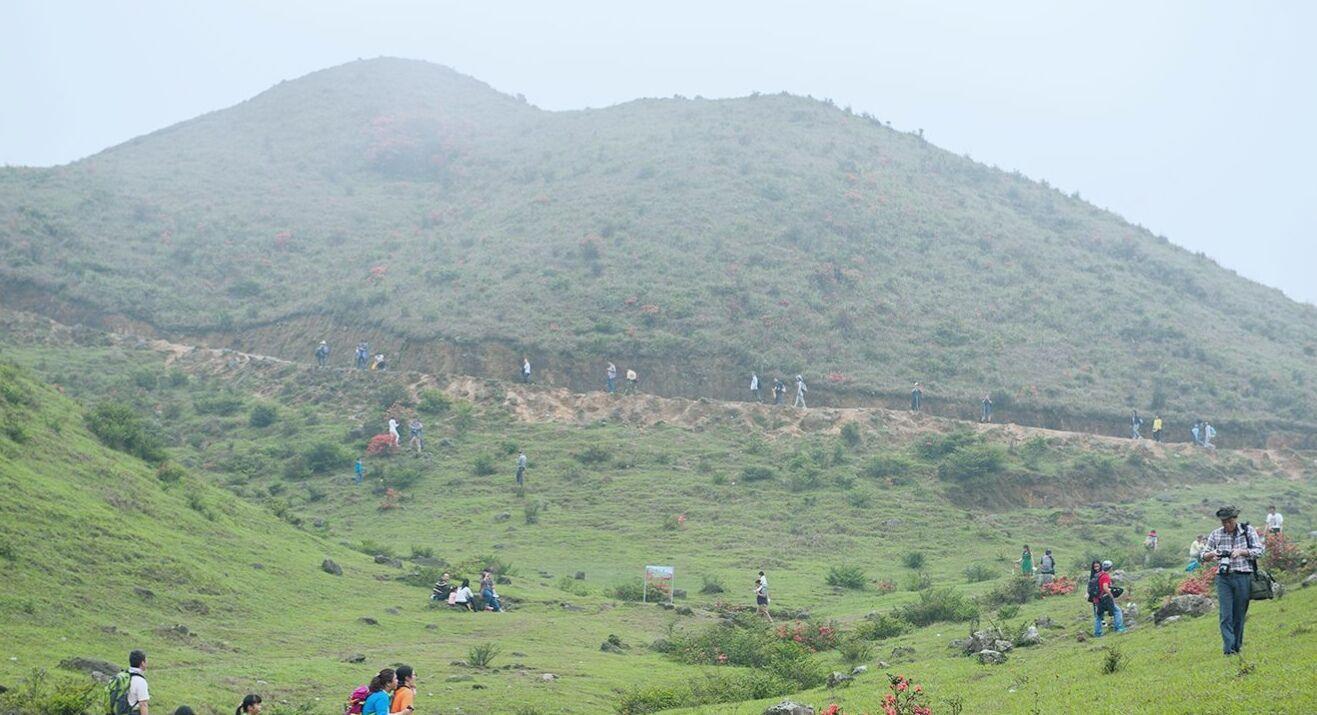 天露山位于广东省云浮市新兴县里洞镇洛洞村,分布于新兴县和开平市、恩平市、阳春市之界,海拔为1250米,故名又称双石顶,是广东中南部的最高峰,山上有杜鹃花、梅花、禾雀花、石榴花、桫椤等,每年3至4月是杜鹃花的季节,满山遍野火红一片,吸引大批游客户外徒步来此赏花,此山山势巍峨,山花烂漫,山脚一带还有禅龙峡漂流、摇摆桥、水上乐园、玻璃桥、特色梅溪小镇,山美、水美、风景美,又是夏季漂流