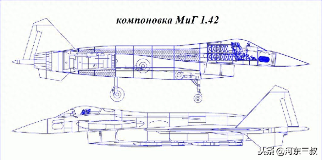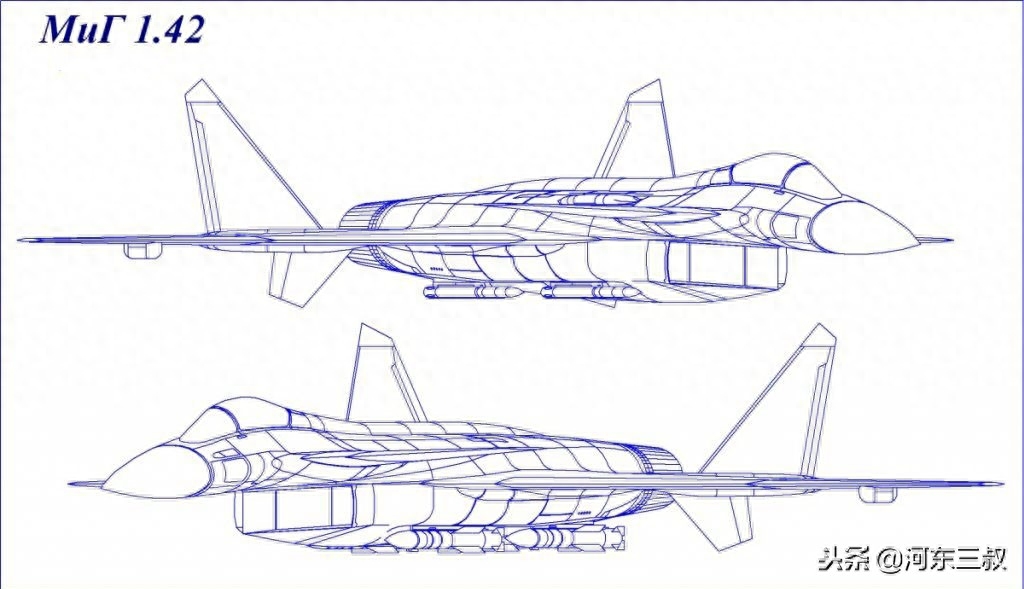 后期改进型米格1.42方案,机腹进气,鸭翼双发,具备部分隐身性能。