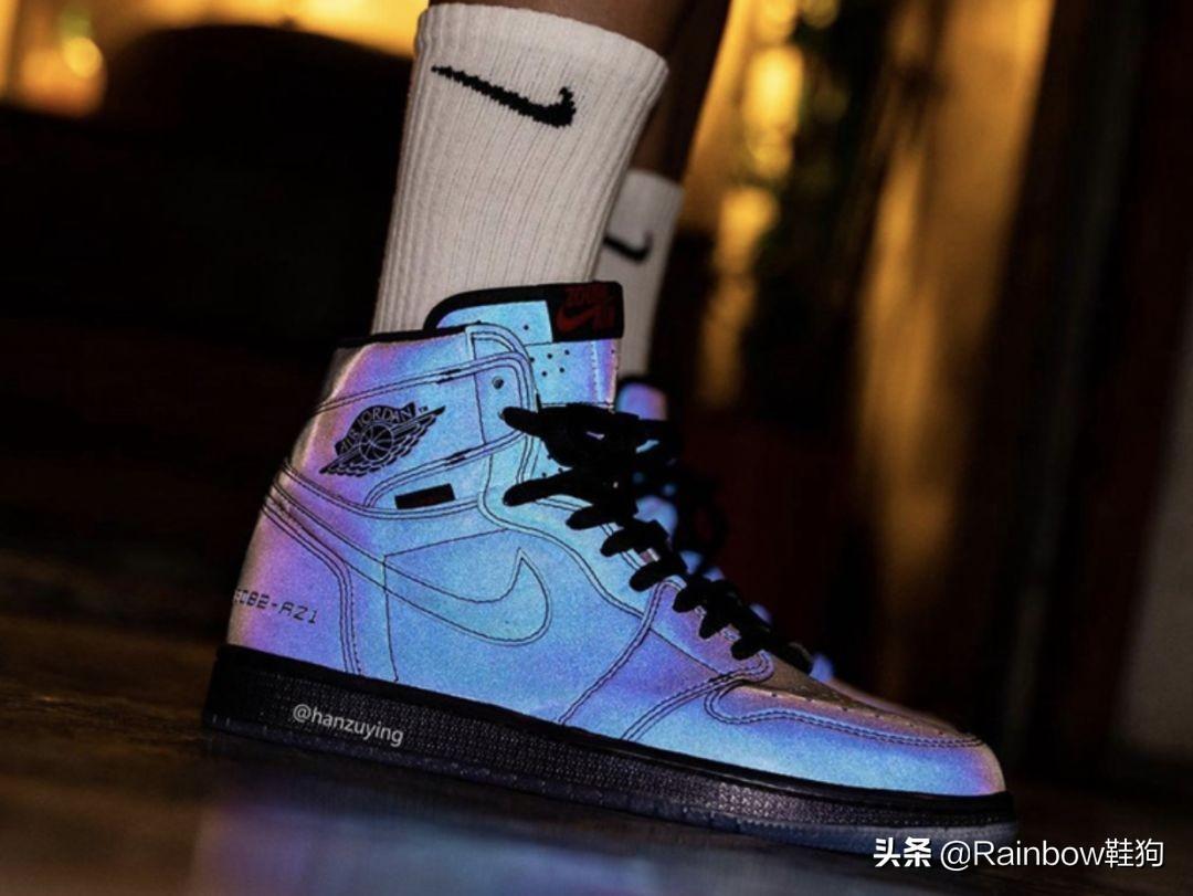 只不过在这双AJ1变色龙发售以后脚感并没有什么质的飞跃,加上货量原因,鞋款一直不温不火。在不触发反光效果的时候,鞋款整体看起来灰扑扑的,廉价感很足,但一旦在光线下触发3M反光,那么整个迪厅最靓的仔就是你了。