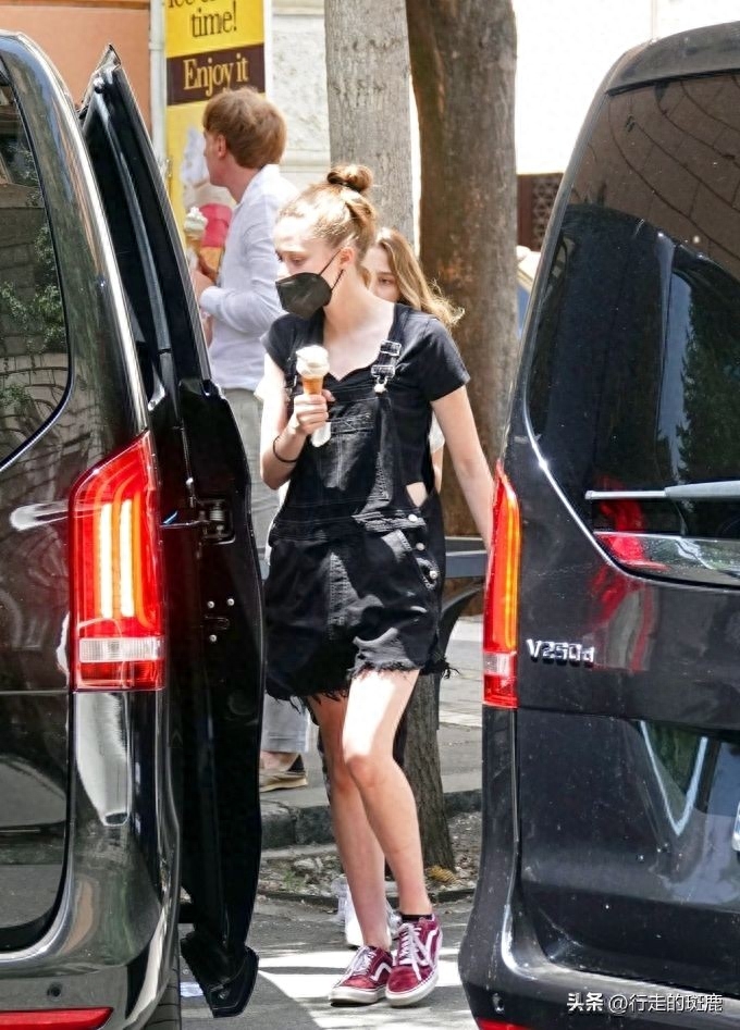 希洛·朱莉-皮特 (Shiloh Jolie-Pitt) 和她妈妈一起在意大利罗马吃冰淇淋。