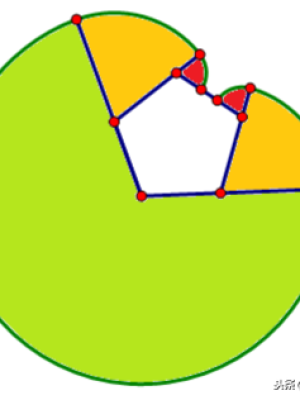 分析:可以先正求出五边形周期,看一周期A经过的路程,如下图转3次为讲解行了一个周期,每周长为期A所走路程相当于两个三分之一圆,五边形面积的算法,可以算出每周期A所走路程是长为12.56厘米。最终奥数答案面积是8434.04厘米。