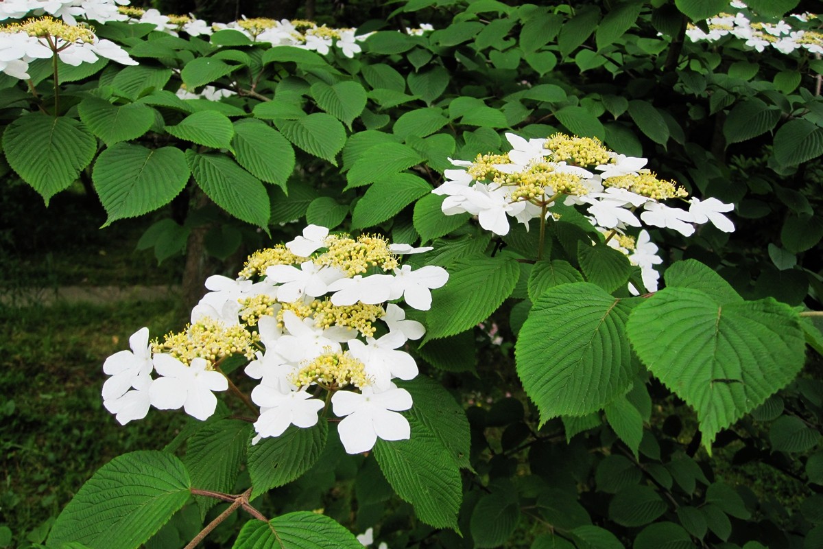 无独有偶,跟琼花同属的蝴蝶戏珠花(V. plicatum 'Tomentosum'),也因为比它的品种粉团荚蒾(V. plicatum)发现并定名得晚,所以被定位后者的变种,真是一对难兄难弟啊。