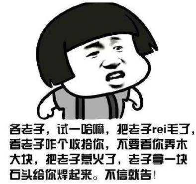 长得又难看,动作又缓慢,你还要切卖蛋炒饭,跟你老汉对到干,喜欢吃鸡儿凉拌,偷点煤炭,拿把逍遥扇,你斗敢和你老汉宣战,确实黑彪悍,你外婆洗澡你都要切看,笑得还黑灿烂,你心头一盘算,跑来问我你该浪个办?我斗直接把你勾子打翻转。