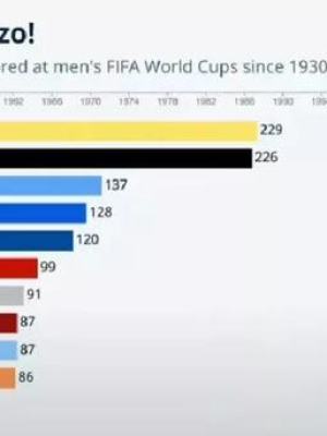 为什么呢?因为巴西和德国是攻势足球,而阿根廷和意大利是防守反击战术,所以进球没有那么多。