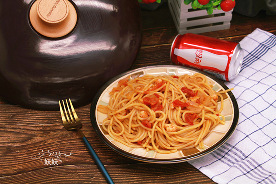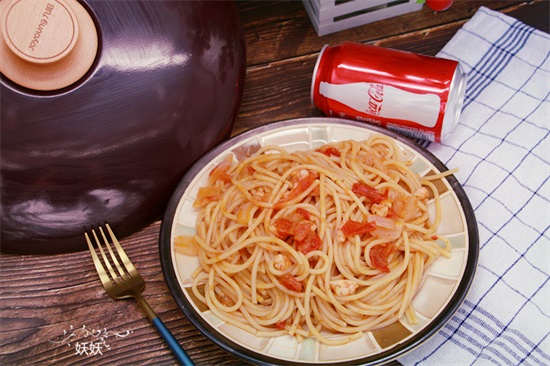 意大利面最常见的底料大致有三种,一种番茄底料,一种鲜奶油底,还有一种橄榄油底,我觉得最容易被孩子接受的还是番茄底料,酱汁煮好了一碗面的灵魂就有了,今天照例是煮了番茄底,为了方便,用了现成的意大利肉酱底料,加了小朋友最爱吃的虾仁,做出来的口感跟西餐厅几乎没有什么区别,孩子说以后再也不去外面吃了。