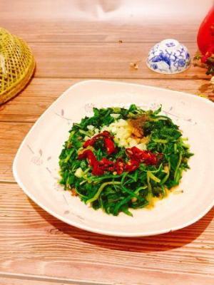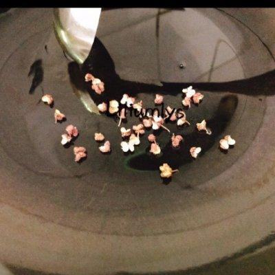 8、炸好花椒油,泼入食用菜搭配上喝。