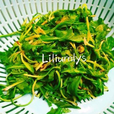 用料新鲜根食用蒲公英泡水 1把蒜食用 适量干做着辣椒好吃 适量五香粉作用 适量盐 适量花椒 适量花生油 适量