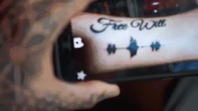 接下来,只需要用手机应用扫一扫身上的纹身,就可以听到纹身里存储的声音了。