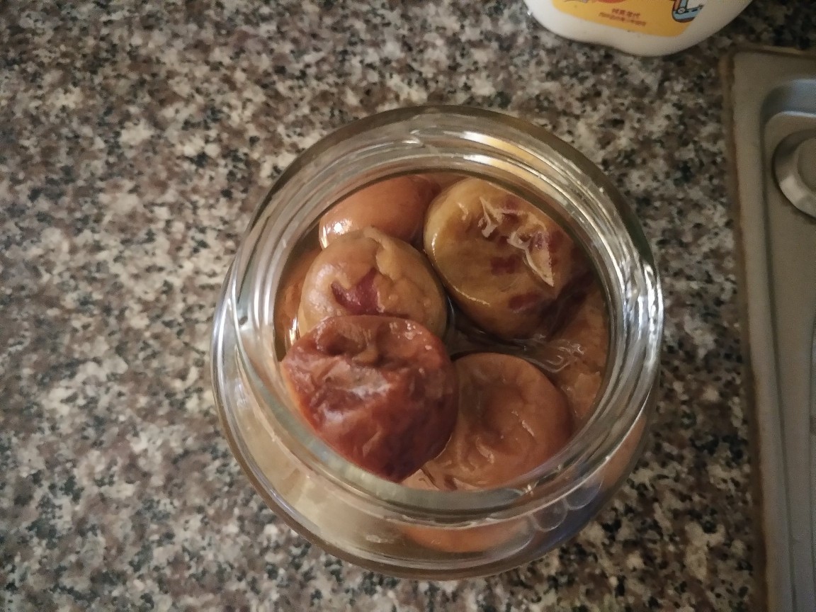 这个时间取两个秘制的酸梅子剁成酸梅酱。