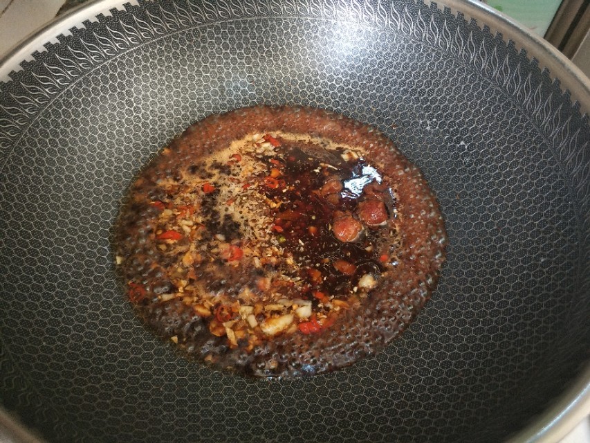 起锅热油,把蒜末小米椒放进去爆香,爆香之后倒入调好的料汁,煮开后,小火煮三分钟就可以了。