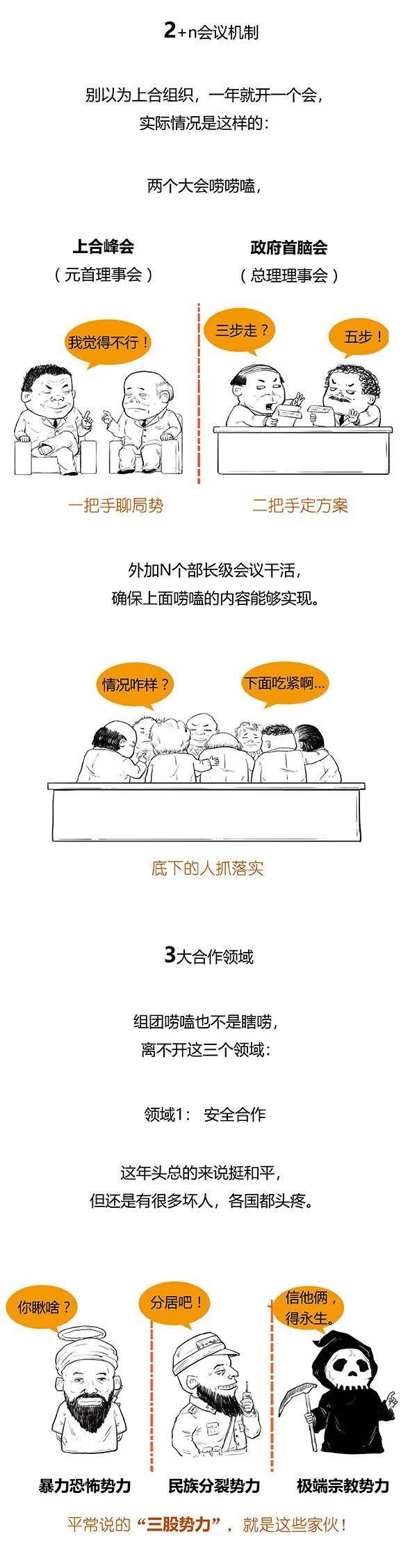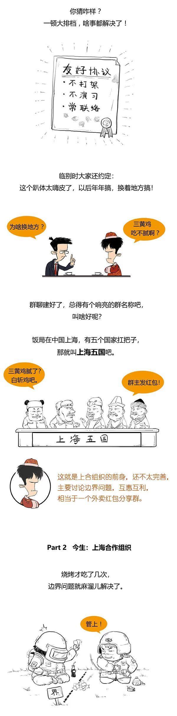 2001年6月,上合组织成员国元首理事会首次会议在中国上海举行。会上,六国元首签署了《上海合作组织成立宣言》,宣告上合组织正式成立。17年来,上合组织不断发展壮大,在2017年阿斯塔纳峰会上,接收印度、巴基斯坦为成员国,如今上合组织已经成为在世界上具有重要影响力的综合地区性组织。