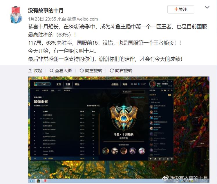 斗鱼主播十月船长,一手船长登顶韩服王者暴虐职业选手高分段!