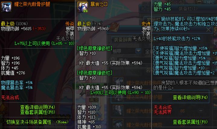防具问题,单论智力,七宗罪裤子和鞋子面板是不如遗迹的,上衣两级勇气的圣物上衣性价比很高,可以自己用做一件来跨界,一百万不到。护肩的话,巨龙护肩和球手肩差距不大,带春节宝珠的更是完爆,所以小编上面提到的达成4000智力不难并不是乱说。
