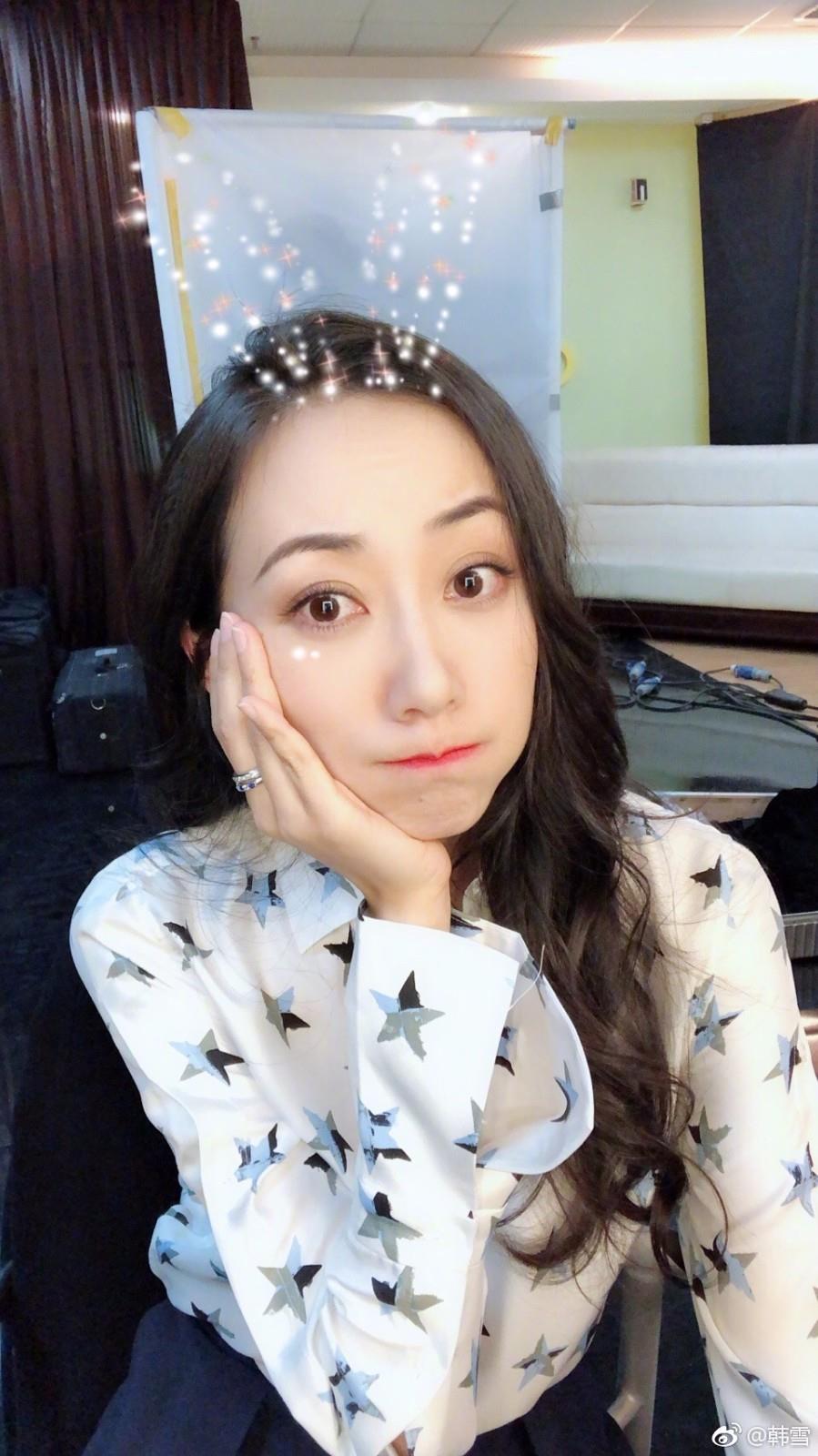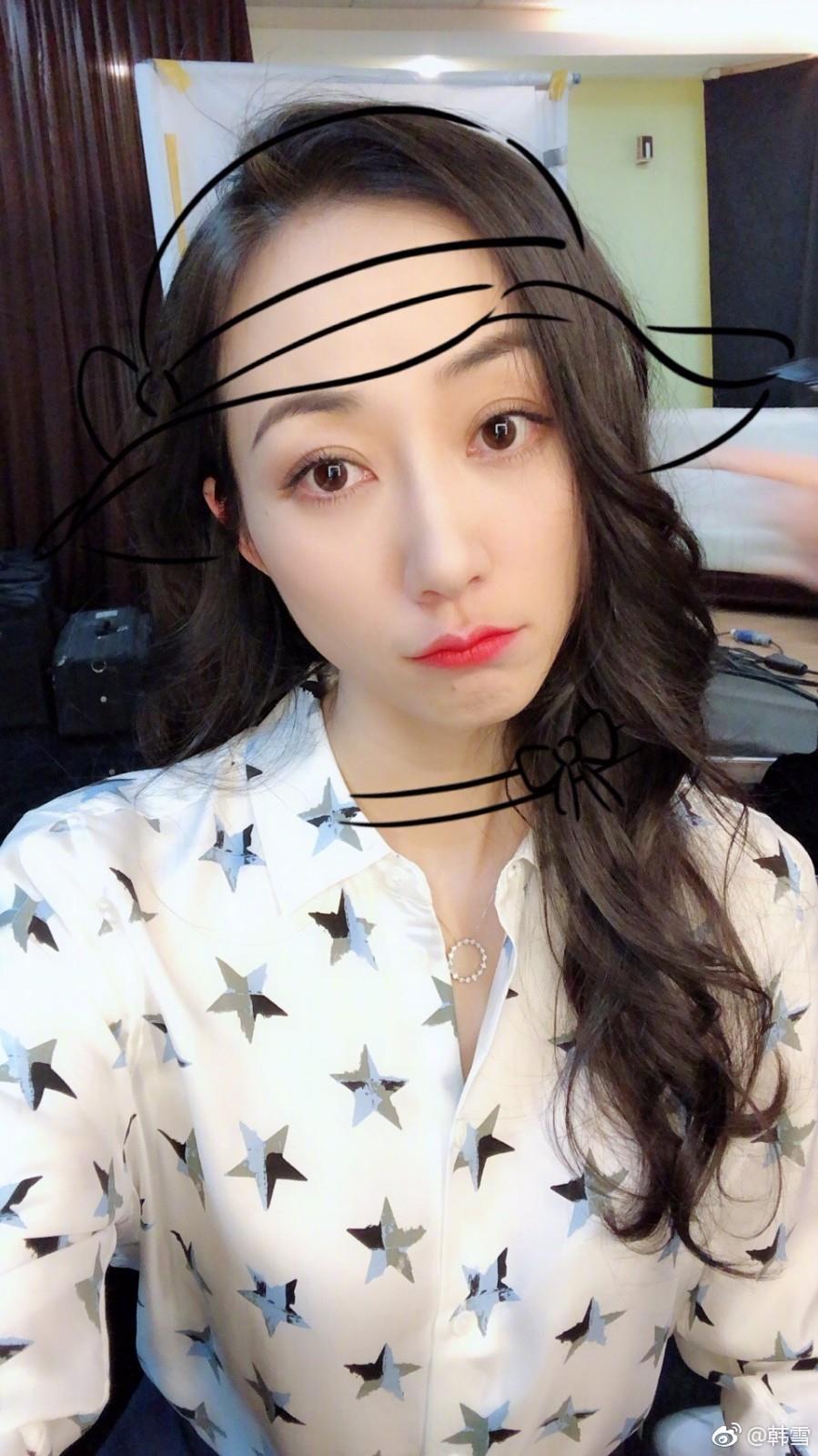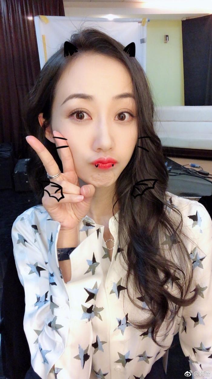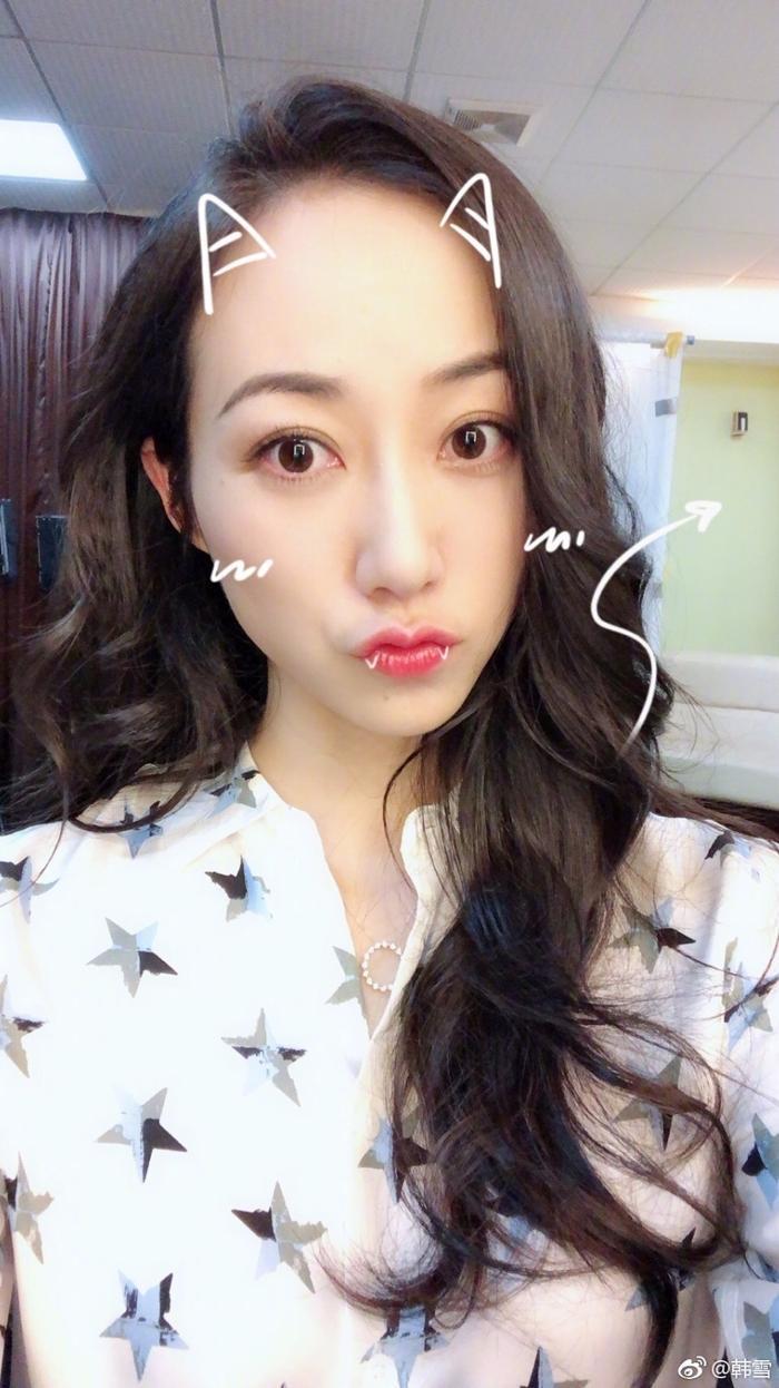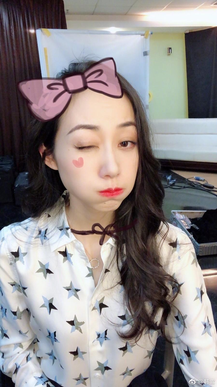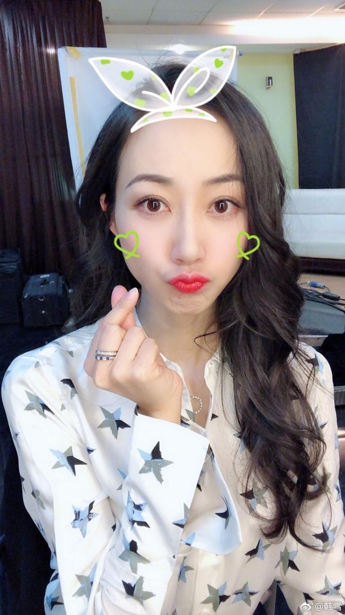 韩雪晒收工照,微博晒出九宫格自拍照,甜美比心太美了!