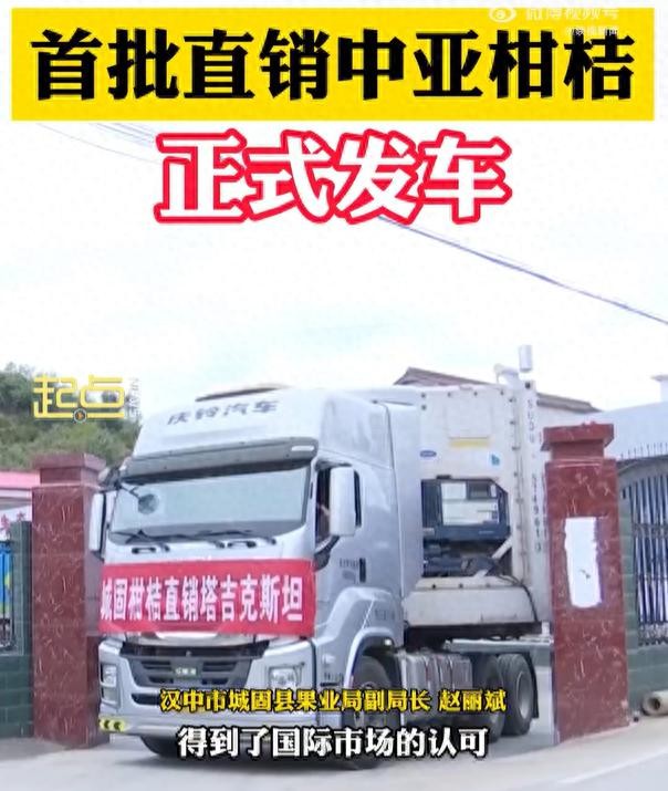 10月21日,汉中城固出产的首批54.5吨直销中亚柑桔完成装车,驶离城固,一路驶向新疆霍尔果斯口岸,开启了直销中亚的旅程。